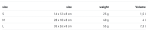 **Svars:** 25 g (S), 40 g (M), 55 g (L).