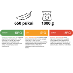 - Temperatūras indikators: Komforts: 10°C (50°F), robeža: 5°C (41°F), ekstrēms: -9°C (16°F).